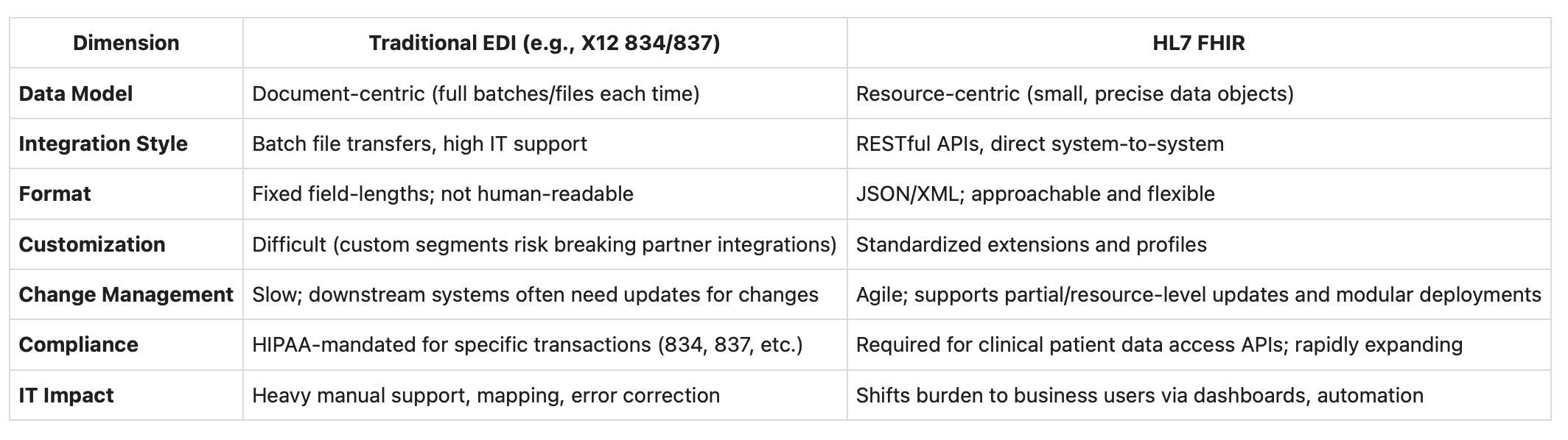 Side-by-Side Comparison: HL7 FHIR vs. Traditional EDI for Healthcare Payers
