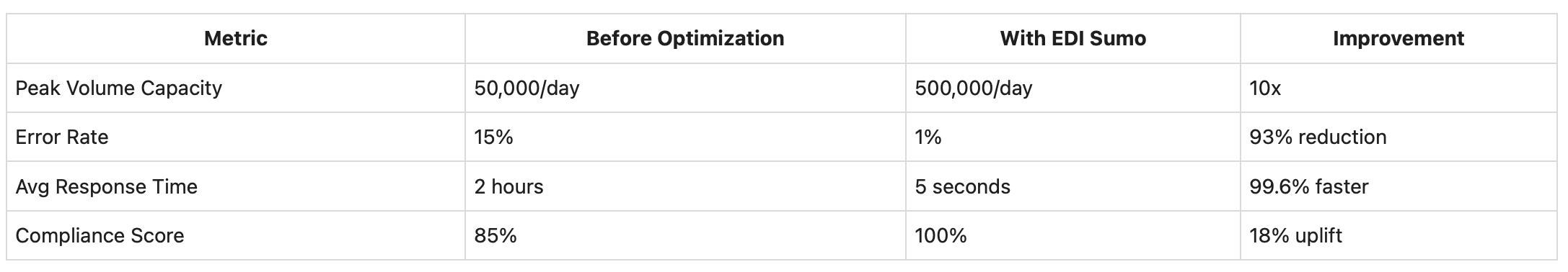 No eligibility operation is complete without robust audit trails and automatic compliance reporting. All EDI 270/271 transactions are logged, tracked, and available for real-time reporting. Automated performance summaries, trading partner acknowledgments, and compliance dashboards should be designed to satisfy HIPAA and GDPR mandates. EDI Sumo’s architecture enables modular growth: start with eligibility, expand to claims and customer service insights, and stress-test regularly to ensure the stack can absorb 10x load increases.